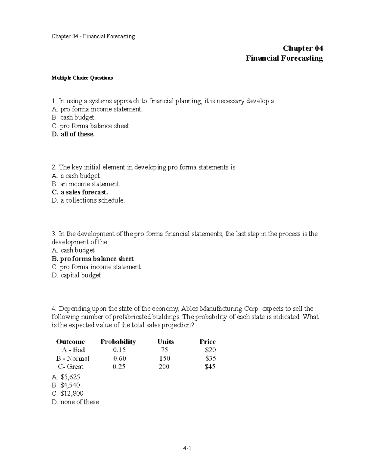 Chap004 Fweffwefahvdffshjvdfhsvdfjsdvfvjsdhf Chapter 04 Financial Forecasting Multiple Choice Studocu